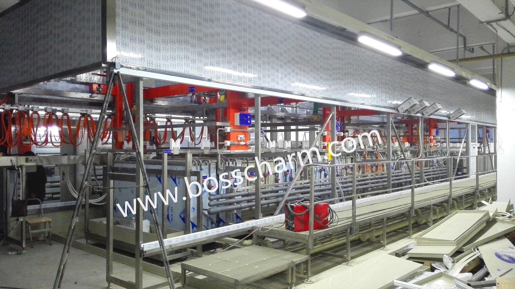 BSC-Q32720FA系列U型電解線u 龍門(mén)機(jī)械手橫向移動(dòng)及縱向提升均采用減速變頻電機(jī),定位精確,運(yùn)行速度快,機(jī)械手安裝防撞機(jī)構(gòu),運(yùn)行安全可靠u 人機(jī)界面,工控系統(tǒng)u 超聲波為雙頻控制,帶485通訊接口,數(shù)據(jù)皆可在屏幕上顯示u 配兩套程序,根據(jù)產(chǎn)品不同要求,選擇不同工藝進(jìn)行清洗